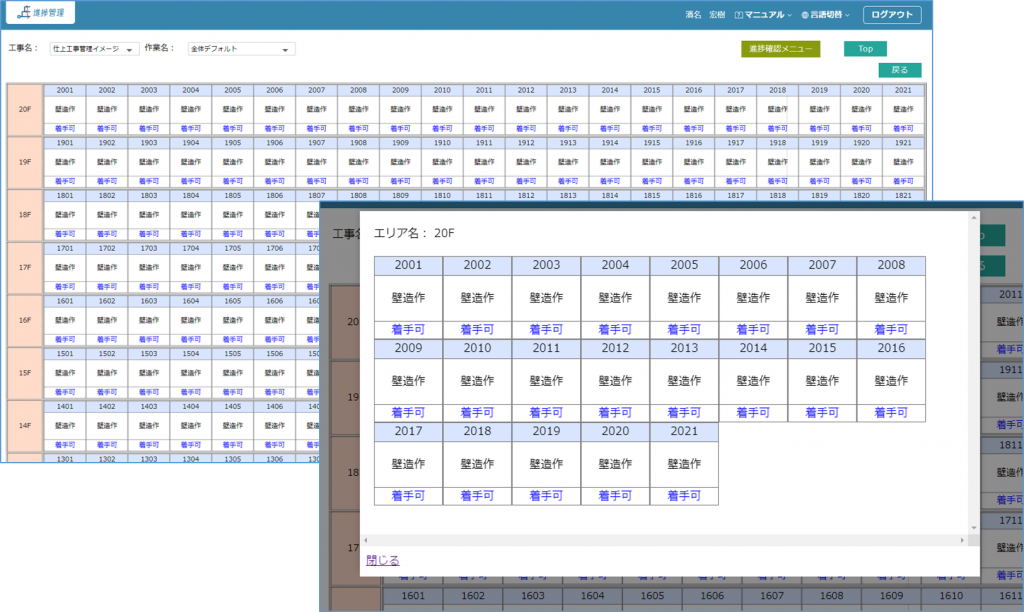 進捗状況の全体像や階ごとの詳細な状況がわかりやすくなりました。