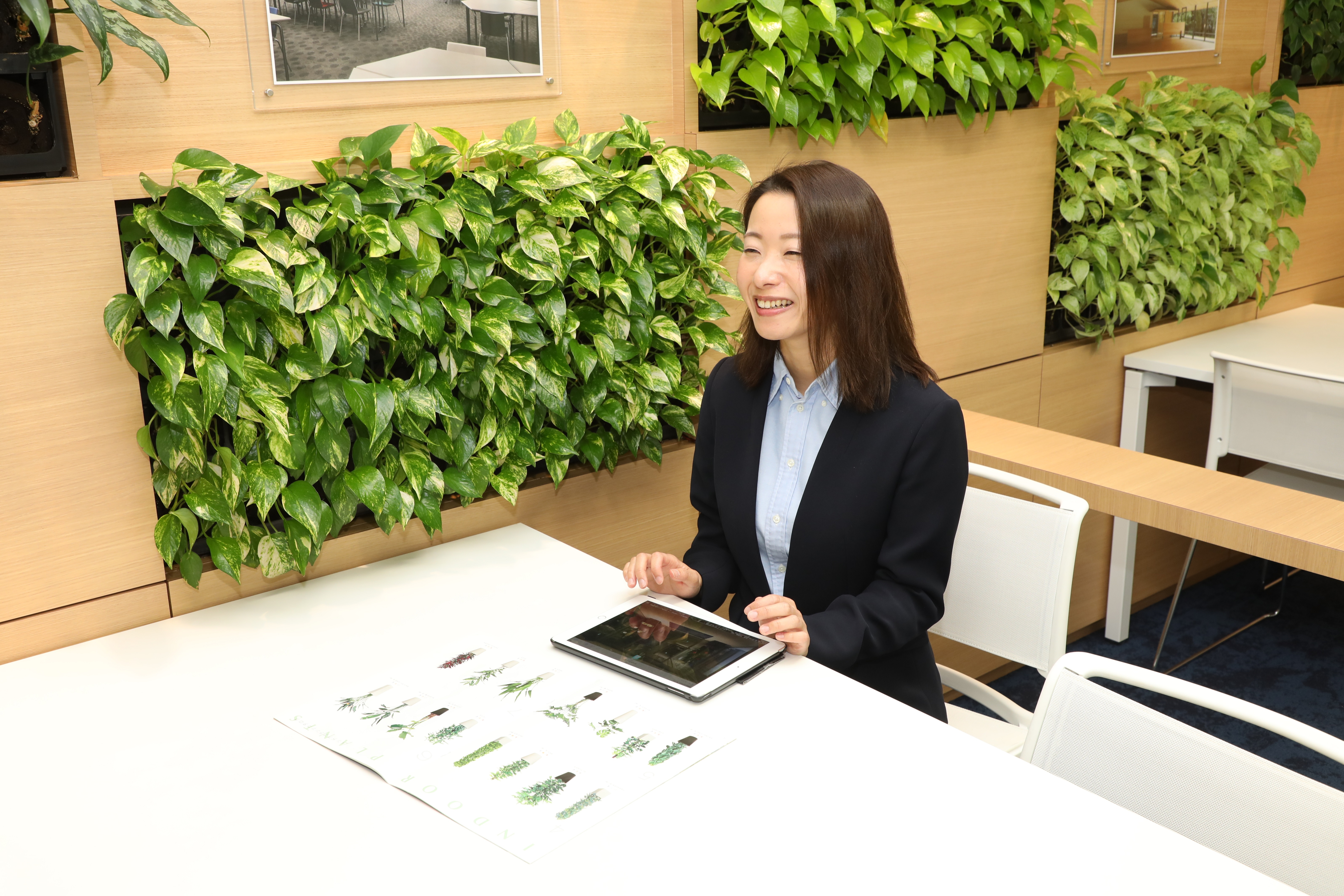 相手の話をよく聞き、イメージを具体化することです。私が取り扱う室内緑化はお客様の描いているイメージを汲み取り、雰囲気に合った植物を提案することが重要です。“柔らかい雰囲気を演出したい”という思いがあれば、空間をどう魅せるべきか、どの植物が合うのか等具体的に考えます。お客様からどれだけ多くの情報を聞き出せるかが大切なのでヒアリングを重ね、お客様が描いているイメージに近付けられるようにしています。